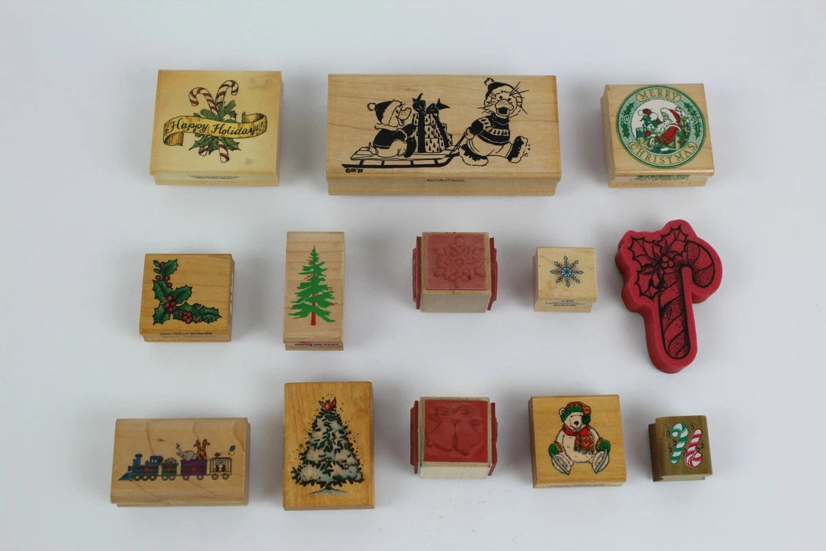 Lot Of 13 Christmas Theme Rubber Stamps Scrapbooking Train Bear Tree Holly S6 Ebay